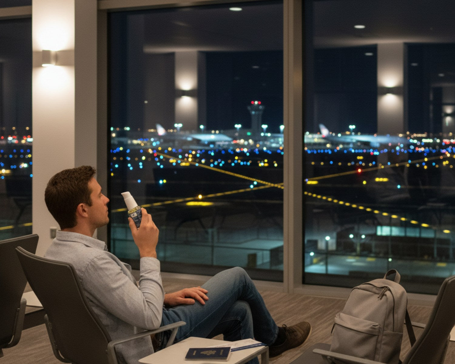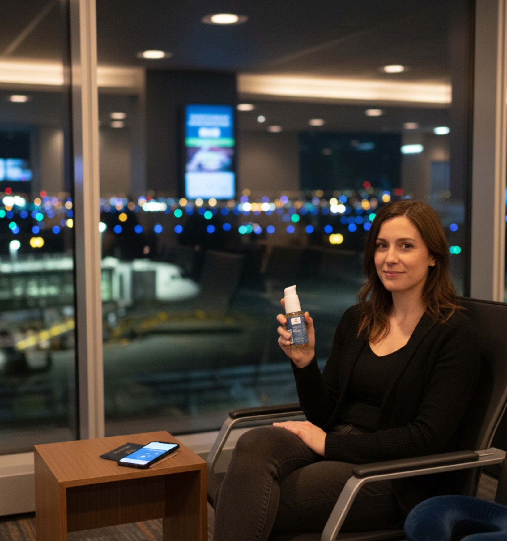 FlyCalm exists for travelers don’t want to rely on alcohol, melatonin, or unhealthy numbing habits for travel. It exists for travelers who want command over their nervous system, not escape from it.